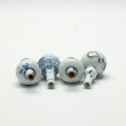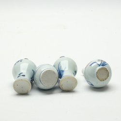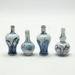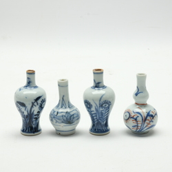 | Omschrijving | Lot van vier 18e eeuwse Chinees porseleinen poppenhuisvaasjes, 5,5 en 7 cm hoog. Een rood-blauw, drie blauw-wit. In goede staat |
