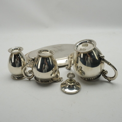 | Kavel | 324. Vierdelig zilveren serviesje, van Kempen |