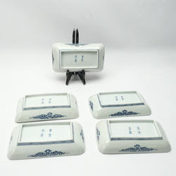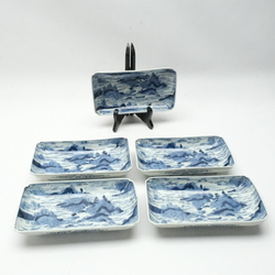 | Omschrijving | Lot van vijf 18e eeuwse langwerpige Japanse schaaltjes, gemerkt met vierkaraktermerk. Zie voor soortgelijk collectie V&A |