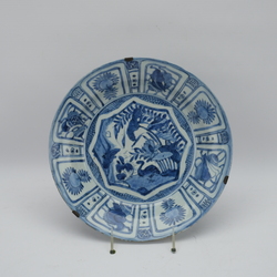 | Omschrijving | Een 17e eeuwse Wanli schotel met vlakverdeling en voorstelling van eend op het plat. |