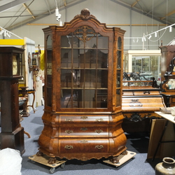 | Omschrijving | Een 20e eeuwse wortelnoten eendeurs porseleinkast, 20e eeuws, met drie lades en bronzen beslag, op klauwpoten |