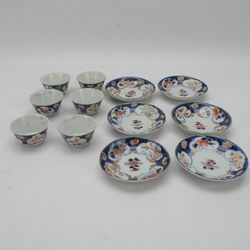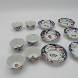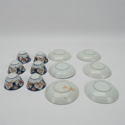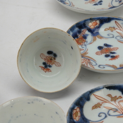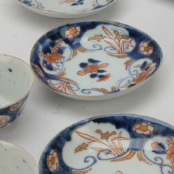 | Omschrijving | Lot van zes 18e eeuwse Japanse kop en schotels, Edo periode, met floraal imari decor. |