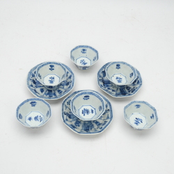 | Omschrijving | Lot van zes antieke kopjes en drie schoteltjes, achtkantig met vlakverdeling, decor van lijzen, vlinders en bloemen. Op de achterzijde gemerkt. China, Kangxi periode (1661 -1722) |