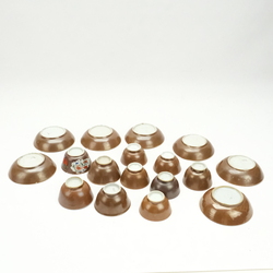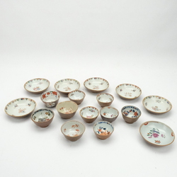 | Omschrijving | Collectie van zeventien Chinees porseleinen capucijner kop en schotels. Zeven schotels en tien kopjes met diverse decors, waaronder Famille ros en verte en melk en bloed |