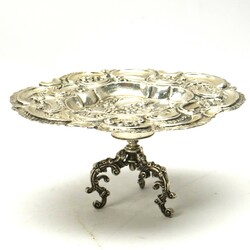 | Omschrijving | Een 18e eeuws Fries zilveren suikertafeltje. Gegoten voet met drie krulpootjes en gecontourneerd rijk gedreven blad in Louis XV stijl. Meesterteken I.B of HB, mogelijk Hendrik Braam (Voet 810) meester in IJsbrechtum. |