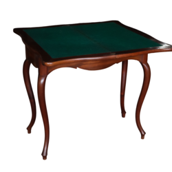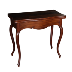 Een antieke 19e eeuwse mahoniehouten speeltafel met gebogen poten, Queen Anne stijl.