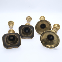 | Omschrijving | Lot van vier 19e eeuws Engelse koperen kandelaars met ronde en zeskantige voet, 21 & 25 cm hoog |