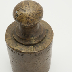| Omschrijving | Een laat 18e eeuws of vroeg 19e eeuws 5 kilo gewicht, gemerkt ‘5000’ en makersmerk. |