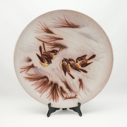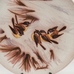 | Omschrijving | Een kapitale aardewerken schotel met een decor van vijf koolmezen in de sneeuw. Gesigneerd op voor en achterzijde Bondanelli. |