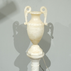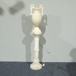 | Omschrijving | Een 20e eeuwse albasten urnvormige lamp, op zuilvormige voet. Beide met ingebouwde verlichting |