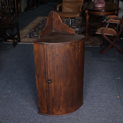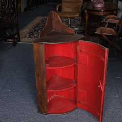 | Omschrijving | Een antiek 19e eeuws houten hoekkastje met roodbeschilderd interieur met drie planken |