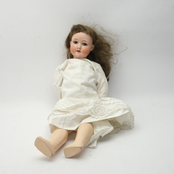 | Omschrijving | Een vroeg 20e eeuwse pop met porseleinen hoofd en papier-maché lichaam, gemerkt ‘Spezial Germany’ |