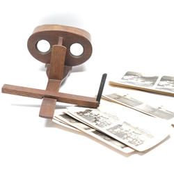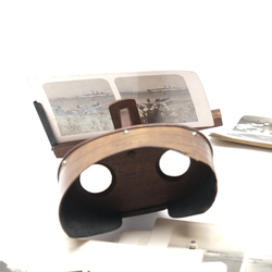 | Omschrijving | Een antieke houten uitschuifbare stereokijker, ca 1900. Met hierbij ca 35 stuks stereo foto's ca 1900. Diverse voorstellingen, waaonder schepen. |