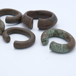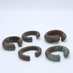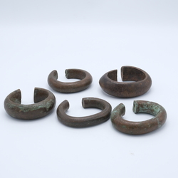 | Omschrijving | Lot van vijf 20e eeuwse Afrikaanse bronzen (enkel)armbanden, werden gebruikt als betaalmiddel |