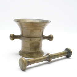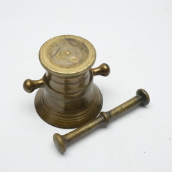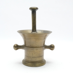 | Omschrijving | Een antieke 19e eeuwse bronzen vijzel met stamper, stamper niet bijpassend |
