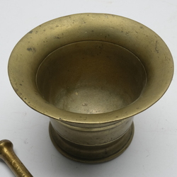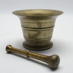 | Omschrijving | Een antieke 18e/19e eeuwse bronzen vijzel met kleine stamper. Onderop met stickertje 'Granada' |