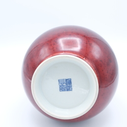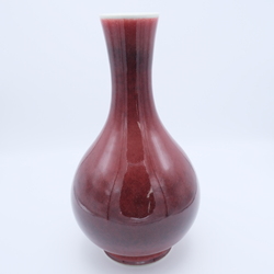 | Omschrijving | Een Chinees porseleinen flesvormige vaas, ossenbloed of ‘langyao’, gemerkt met zegelmerk. China 20e /21e eeuw. |