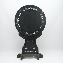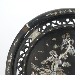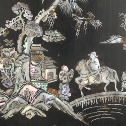 | Omschrijving | Een 19e eeuws Chinees zwarthouten tafelscherm, ingelegd met parelmoer. Voorstelling van een ruiter op paard over een brug |