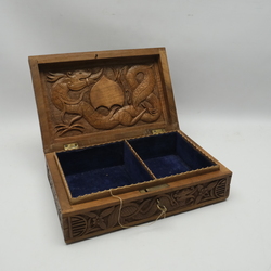 Een 19e eeuwse of vroeg 20e eeuwse Chinese houten kist met gestoken decor van draken.