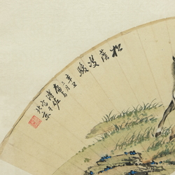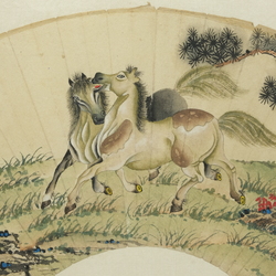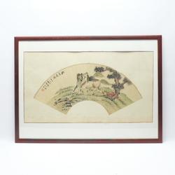 | Omschrijving | Een vroeg 20e eeuwse Chinese beschilderde waaier in lijst, voorstelling van twee paarden. Gemerkt met Chinese karakters en zegelmerken |