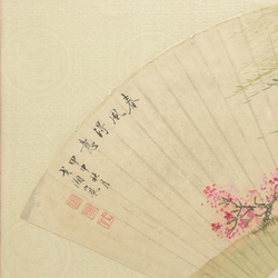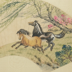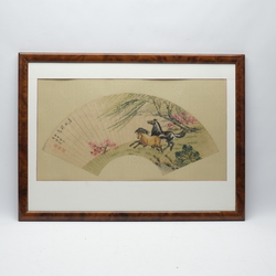 | Omschrijving | Een vroeg 20e eeuwse Chinese beschilderde waaier in lijst, voorstelling van twee paarden. Gemerkt met Chinese karakters en zegelmerken |