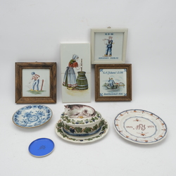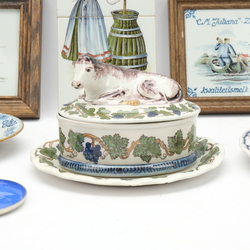 | Omschrijving | Lot divers 20e eeuws Tichelaar Makkum, waaronder diverse tegels, twee wandbordjes en een botervloot bekroond met een koe, aan de binnenzijde gemerkt ‘Botercontrolestation Noord-Holland 1920-1960’. |