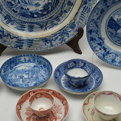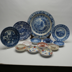 | Omschrijving | Lot divers 18e en 19e eeuws Engels porselein, waaronder borden en kop en schotels, beschilderd en met transferdecor. |