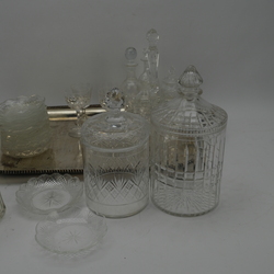 | Kavel | 523. Divers kristal en verzilverd dienblad |