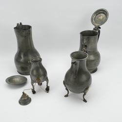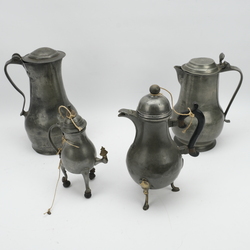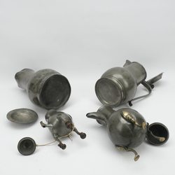 Lot divers 18e en 19e eeuws tin: drie kannen en één miniatuur kraantjespot.