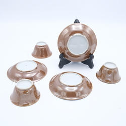 | Kavel | 580. Drie capucijner kop en schotels, 18e eeuw |