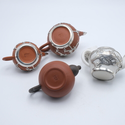 | Kavel | 611. Drie Chinees Yixing en één porseleinen trekpotjes |