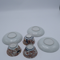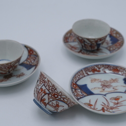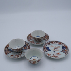 Drie 18e eeuwse Japans imari kop en schotels.