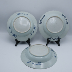 | Omschrijving | Drie gelijke 18e eeuwse Chinees porseleinen diepe schotels. Blauw/wit met vlinders op de randen en Chinese tuin op het plat. |