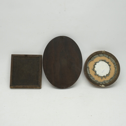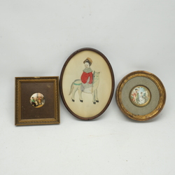 | Omschrijving | Een Chinees zijde kunstwerk in lijst en hierbij twee porseleinen beschilderde plaquettes in lijsten. Alles gelijst. |