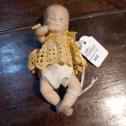 | Omschrijving | Een antiek poppenhuis popje met porseleinen armen, benen en hoofd. Ongemerkt. Gekleed. |