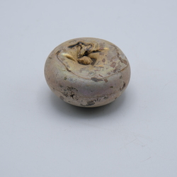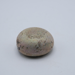 | Omschrijving | Een antiek geiridiseerd rond en plat strijkglas. Mogelijke bodemvonds. 16e eeuws of eerder. |