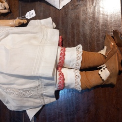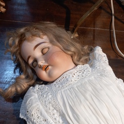 | Omschrijving | Een antieke pop met papiermaché armen en benen. Voorzien van een porseleinen hoofd. Gemerkt Kresner nr. 112 |