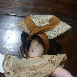| Omschrijving | Een antieke pop met papiermaché armen en benen. Porseleinen hoofd, aan de achterzijde gemerkt Herm-Stein (= Herman Steiner). Gekleed. |