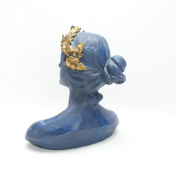 | Omschrijving | Een 20e eeuwse blauwe buste van een vrouw met lauwerkrans en opschrift ‘Fama volat’, naar Emilio Fiaschi (1858-1941). 39 cm hoog |