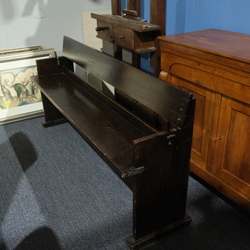 | Omschrijving | Een antieke gebeitste grenenhouten kerkbank |