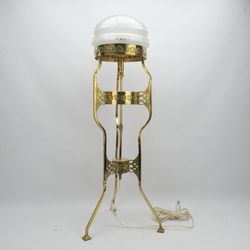 | Omschrijving | Een vroeg 20e eeuwse koperen lamp, omgebouwde gaslamp, met kristallen gesatineerde en gegraveerde kap. |