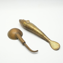 Lot van twee stuks koper: een beweegbare vis en een oorschelp