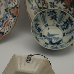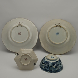 | Conditie | Schaaltje gelijmd, wandborden met chip/schilvers, kraaikom met kleine chip |