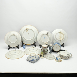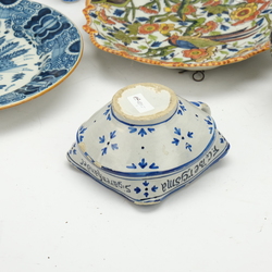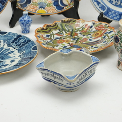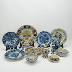 | Omschrijving | Een lot met divers aardewerk. Bestaande uit schotels, dekselvaas, miniatuurvaasjes, grote theebus, komfoor en een reclame asbak: F.G, Bergsma, Makkum. |