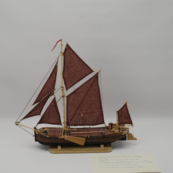 | Omschrijving | Een handgebouwd modelschip, voorstelling van een Thames Barge, een Engels koopvaardersschip voor de kustwacht rond de Theems uit het midden van de 19e eeuw |