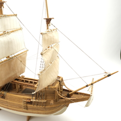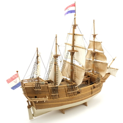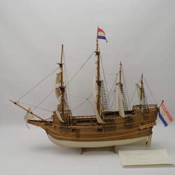 | Omschrijving | Een handgebouwd modelschip, voorstelling van een VOC galjoen uit de 16e/17e eeuw |