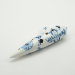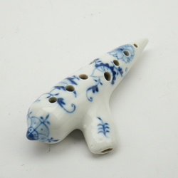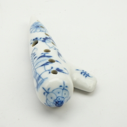 | Omschrijving | Een porseleinen ocarina fluit, Zwiebelmuster motief. Mogelijk Meissen. |