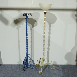 | Omschrijving | Een 20e eeuwse blauwe smeedijzeren getorste zuil, met daarbij een 20e eeuwse smeedijzeren lamp met glazen kap |