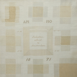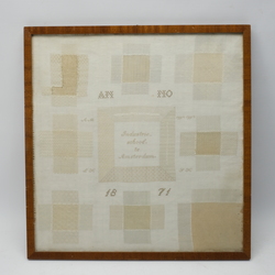 | Omschrijving | Een 19e eeuwse stoplap. Met opschrift ‘Industrieschool te Amsterdam’ en datering 1871. |