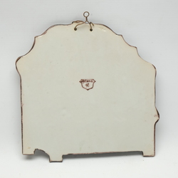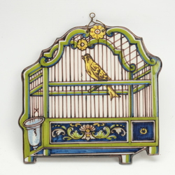 | Omschrijving | Een Fries aardewerken tegelplaat. Polychroom beschilderd met vogel in kooi. Gemerkt Tichelaar, Makkum. Ca 1930. |